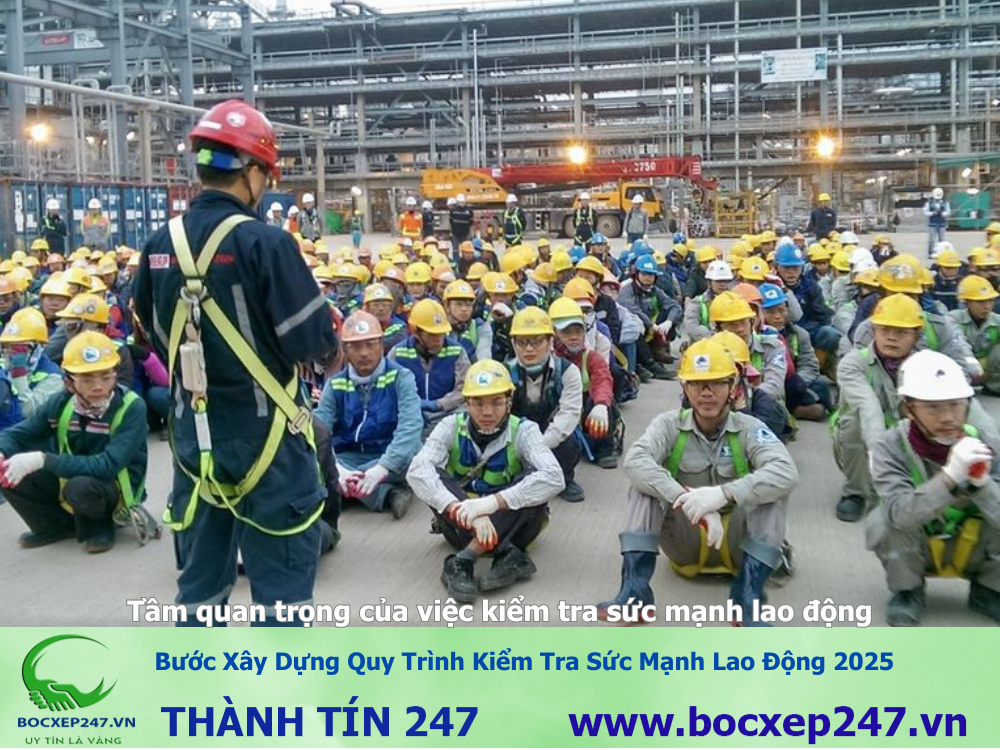 Xây dựng một quy trình kiểm tra sức mạnh lao động hiệu quả trong năm 2025 là yếu tố quan trọng để đảm bảo an toàn, năng suất và sức khỏe cho lực lượng lao động. Bằng cách thực hiện các bước như xác định yêu cầu công việc, thiết lập tiêu chí kiểm tra, sử dụng công cụ hiện đại, và liên tục cải tiến quy trình, các doanh nghiệp như CÔNG TY TNHH THƯƠNG MẠI DỊCH VỤ VẬN TẢI NHÂN LỰC THÀNH TÍN 247 có thể tối ưu hóa hiệu quả trong các dịch vụ như cung ứng lao động, bốc xếp hàng hóa, và vận chuyển hàng siêu trường siêu trọng.