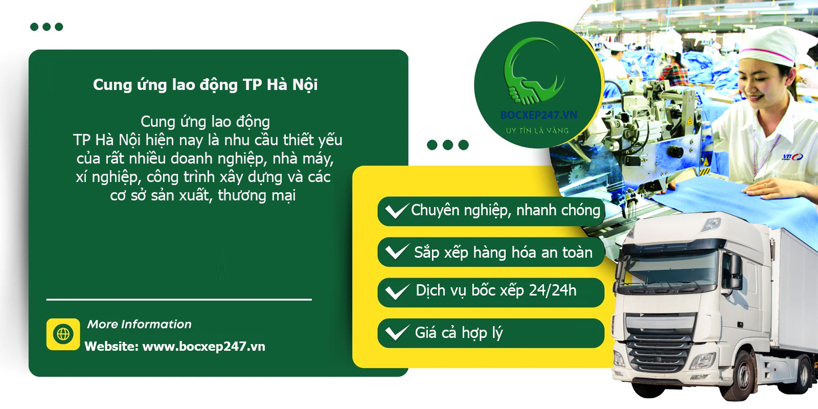 Dịch vụ cung ứng lao động TP Hà Nội của Công ty TNHH Thương Mại Dịch Vụ Vận Tải Nhân Lực Thành Tín 247 là giải pháp toàn diện, giúp doanh nghiệp tại thủ đô giải quyết bài toán nhân sự một cách hiệu quả, tiết kiệm và chuyên nghiệp. Với đội ngũ lao động chất lượng, quy trình làm việc minh bạch, và mạng lưới chi nhánh rộng khắp, Thành Tín 247 không chỉ đáp ứng nhu cầu lao động mà còn mang đến sự an tâm và hài lòng cho khách hàng. Ngoài ra, các dịch vụ bổ sung như bốc xếp hàng hóa, bốc hàng container khu công nghiệp, và vận chuyển hàng siêu trường siêu trọng giúp công ty trở thành đối tác tin cậy của mọi doanh nghiệp và cá nhân tại Hà Nội.