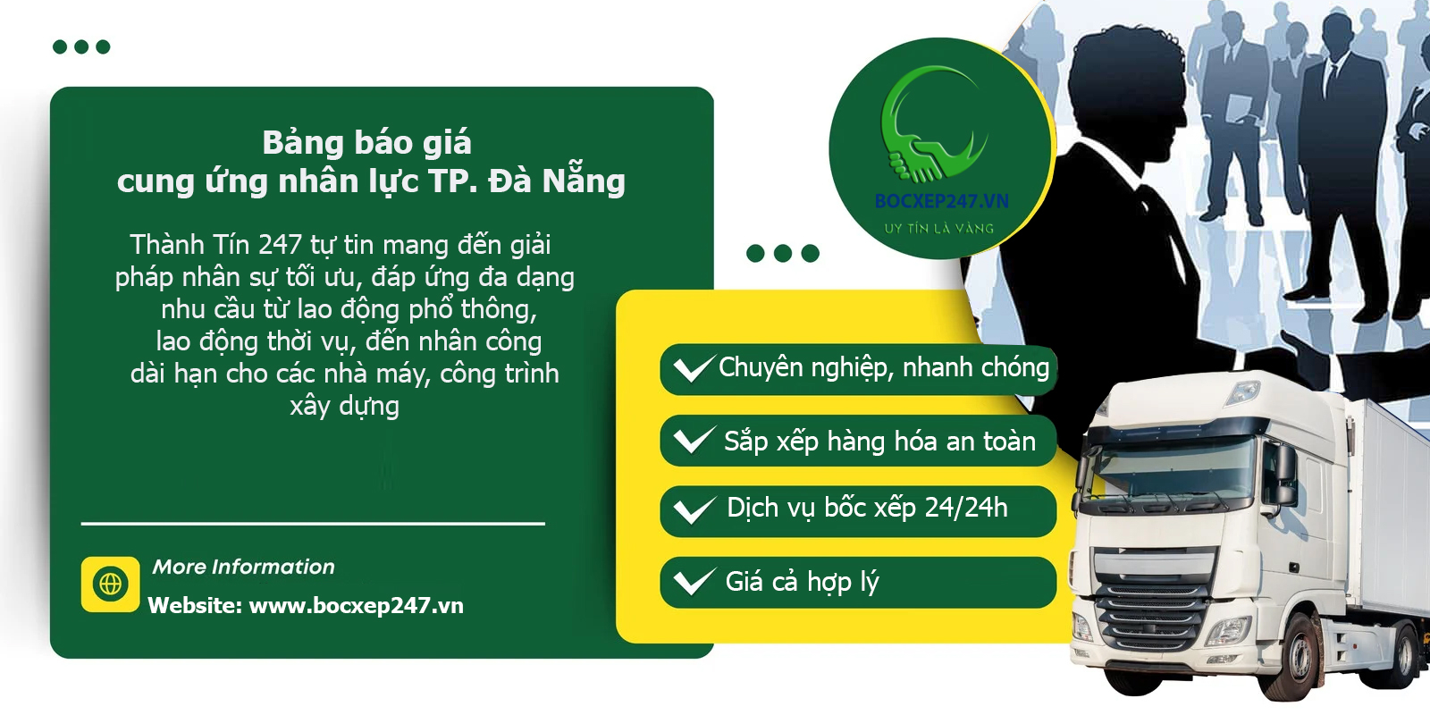 Thành Tín 247 cung cấp một loạt các dịch vụ cung ứng nhân lực và vận tải tại Đà Nẵng, bao gồm: