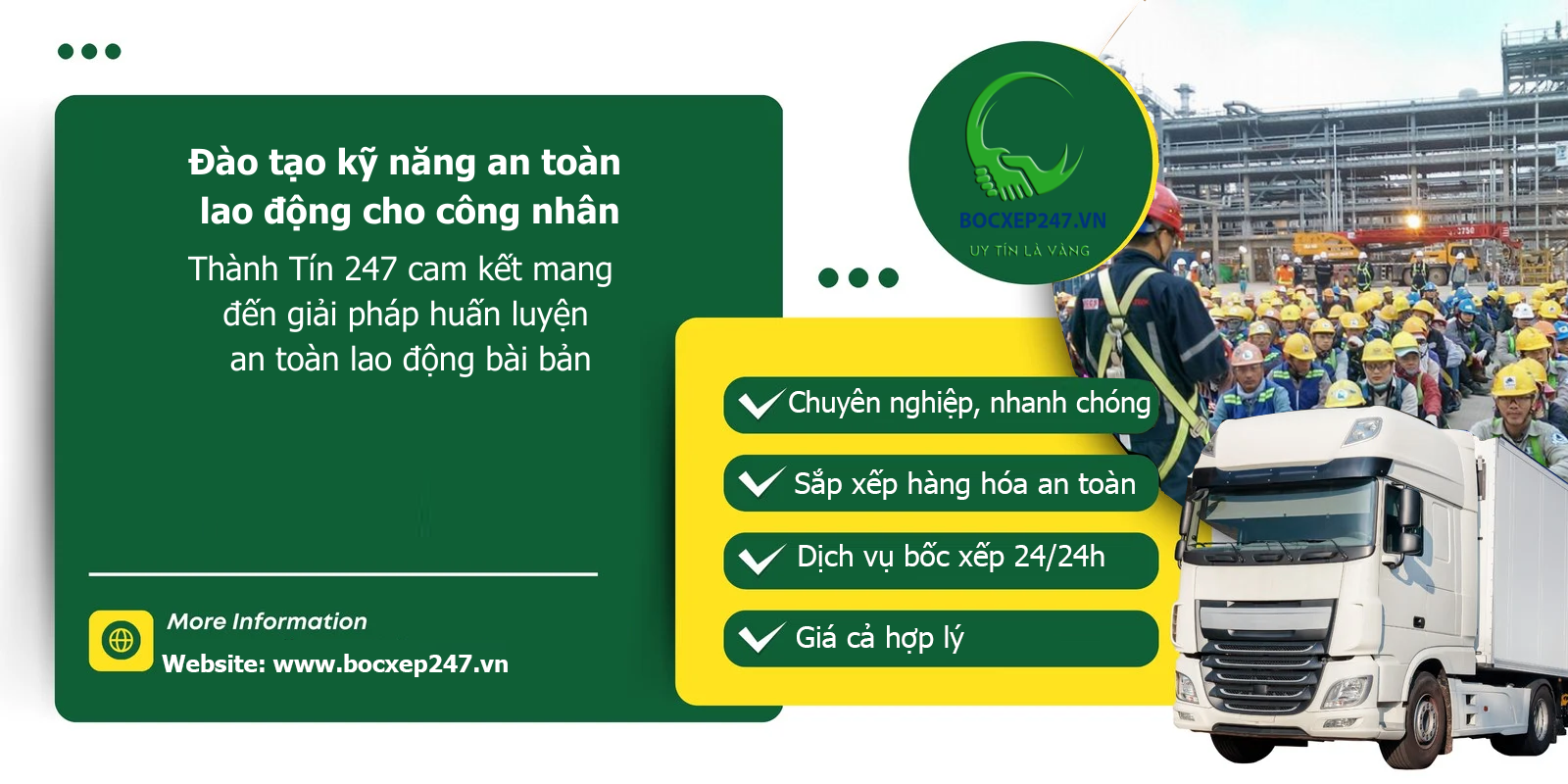Trong bài viết này, chúng tôi sẽ phân tích chi tiết về tầm quan trọng của đào tạo kỹ năng an toàn lao động, các phương pháp đào tạo hiệu quả, và cách mà Thành Tín 247 áp dụng các chương trình đào tạo để nâng cao chất lượng dịch vụ bốc xếp hàng hóa, bốc xếp kho xưởng, và các dịch vụ liên quan như vận chuyển hàng siêu trường siêu trọng.