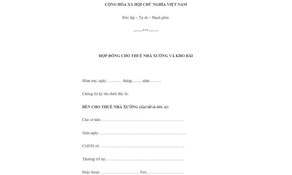 Mẫu hợp đồng mượn kho bãi mới nhất năm 2024
