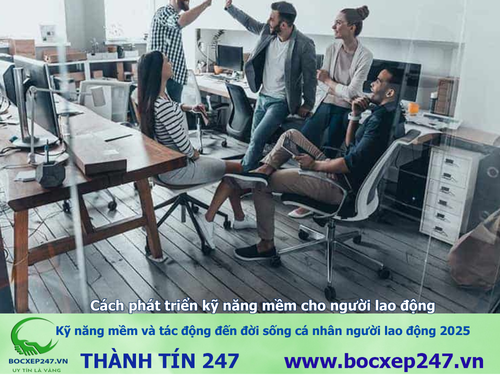 Người lao động có thể tham gia các khóa học kỹ năng mềm do các tổ chức hoặc doanh nghiệp cung cấp. Ví dụ, Công ty TNHH Thương Mại Dịch Vụ Vận Tải Nhân Lực Thành Tín 247 thường xuyên tổ chức các buổi đào tạo để nâng cao kỹ năng giao tiếp và làm việc nhóm cho nhân viên làm việc trong các lĩnh vực như bốc xếp hàng hóa và cung ứng lao động.