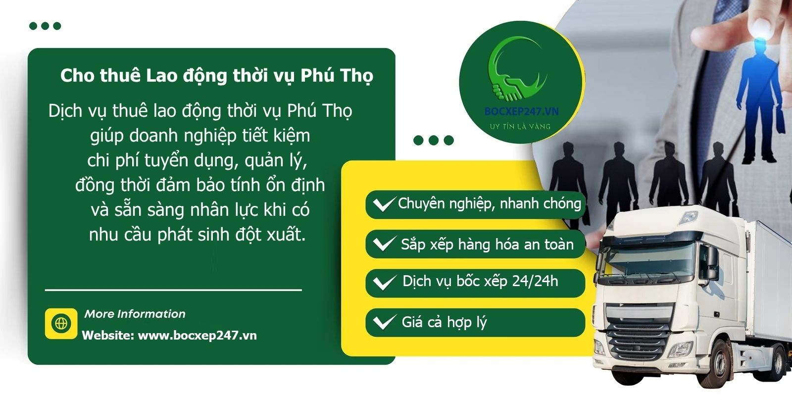 Bài viết này sẽ giới thiệu chi tiết về dịch vụ cho thuê lao động thời vụ Phú Thọ của Bốc Xếp 247, những lợi ích mà doanh nghiệp nhận được khi sử dụng dịch vụ, cùng với các thông tin liên quan đến các dịch vụ khác mà công ty cung cấp.