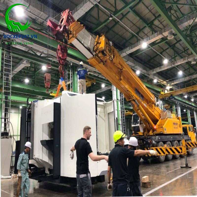 4. Tháo dỡ và lắp đặt: Sau khi đến địa điểm mới, đội ngũ sẽ tháo dỡ và lắp đặt lại máy móc, thiết bị theo yêu cầu. Dịch vụ cầu hàng nâng hỗ trợ nâng hạ các thiết bị nặng một cách an toàn.