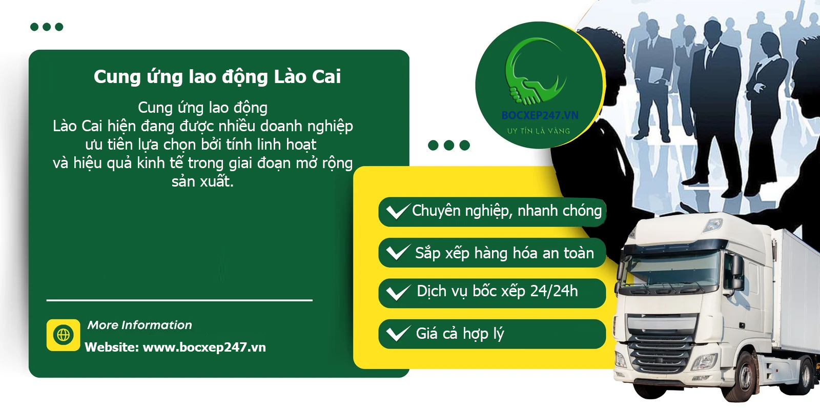 CÔNG TY TNHH THƯƠNG MẠI DỊCH VỤ VẬN TẢI NHÂN LỰC THÀNH TÍN 247 đã xây dựng danh tiếng là đơn vị cung ứng lao động hàng đầu tại Việt Nam, với các giải pháp toàn diện dành cho doanh nghiệp tại Lào Cai. Công ty mang đến các dịch vụ chuyên nghiệp, giúp doanh nghiệp vượt qua các thách thức về nhân sự và tối ưu hóa hiệu quả kinh doanh.