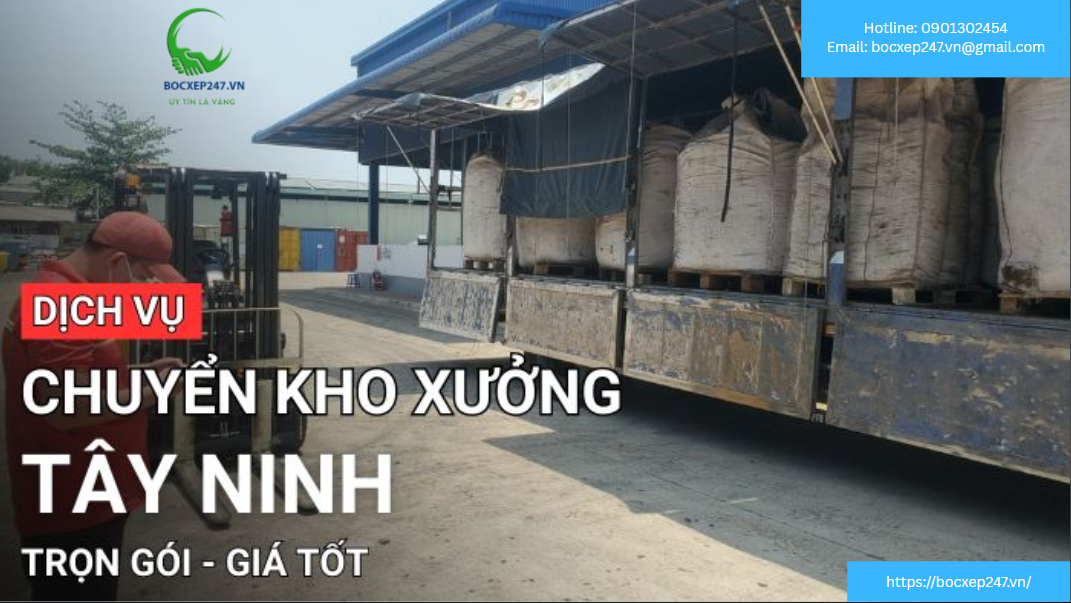 Quý khách có thể liên hệ Bốc Xếp 247 qua hotline 0901302454, email bocxep247.vn@gmail.com, hoặc truy cập website www.bocxep247.vn để đặt dịch vụ vận chuyển kho xưởng tại Tây Ninh nhanh chóng và nhận tư vấn miễn phí.