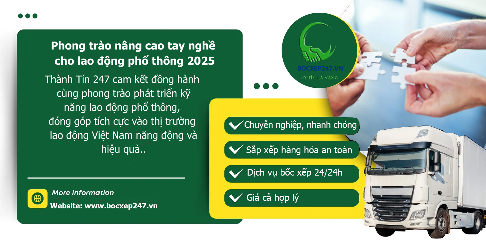 Các công ty như Công ty TNHH Thương Mại Dịch Vụ Vận Tải Nhân Lực Bốc Xếp 247 đóng vai trò quan trọng trong việc thúc đẩy phong trào nâng cao tay nghề. Với các dịch vụ đa dạng như cung ứng lao động, bốc xếp hàng hóa, và vận chuyển hàng siêu trường siêu trọng, Bốc Xếp 247 có thể: